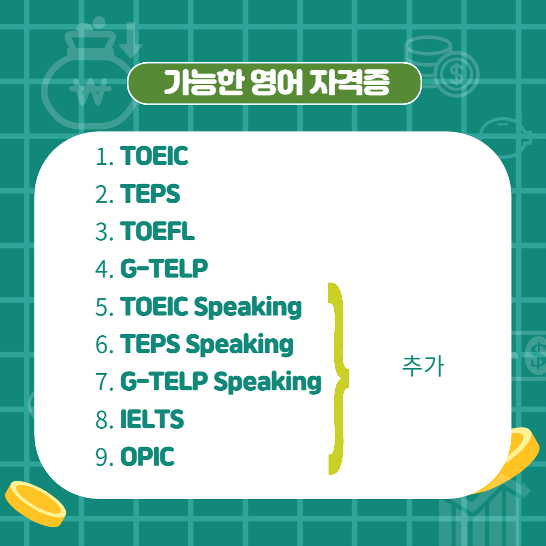 ■ 비고 : 모든 어학성적이 5년 보장되는 것은 아니며, 시행처마다 차이가 있을 수 있어서 추가 확인 요망