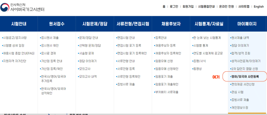 ■ 연장하는 곳 : 사이버국가고시센터 > 마이페이지 > 영어/외국어 사전등록 > 영어·외국어 성적 등록/확인 메뉴에서 가능
