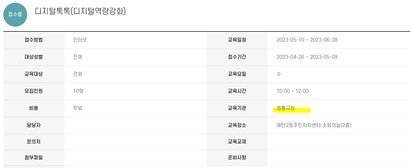 3. 강의 대상: 65세 이상 어르신 (매탄 2동 주민 우선)
