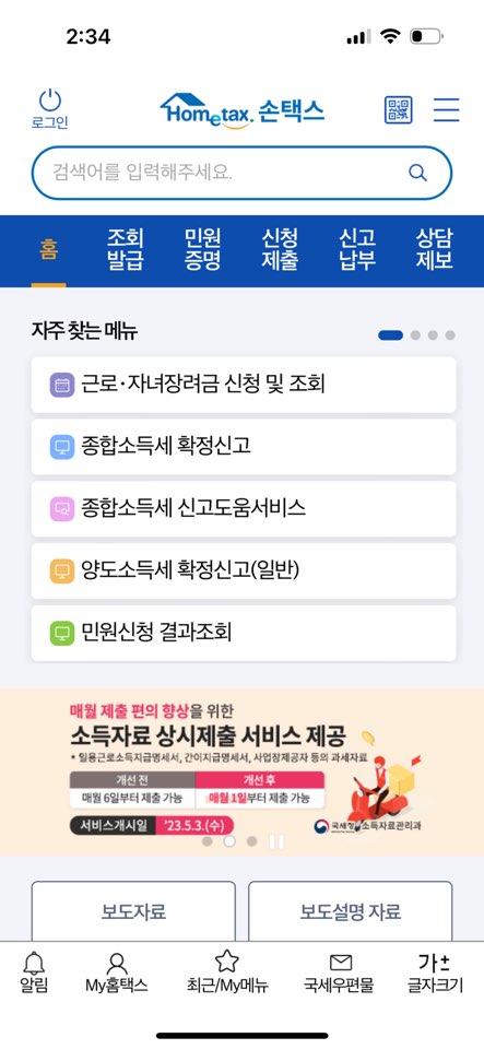 모바일 홈택스 '손택스' 어플에서 신고