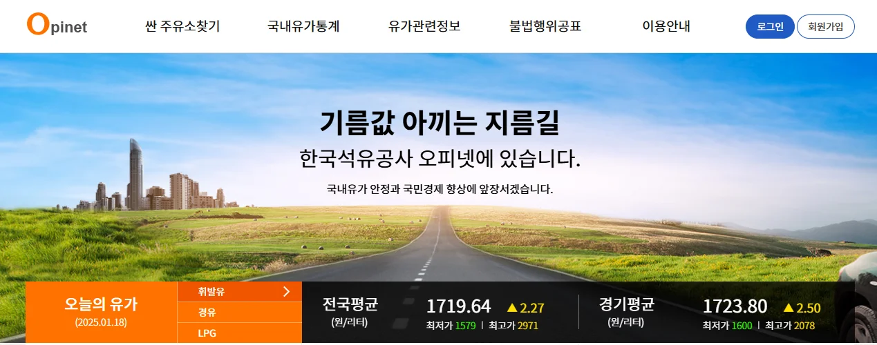 오피넷을 활용해 현재 전국 주유소 평균 가격을 확인하는 방법은 다음과 같습니다: