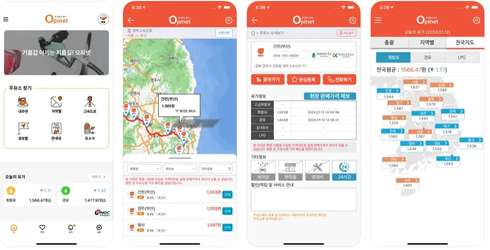 - 가격 비교: 오피넷을 통해 주유소 가격을 비교하여 가장 저렴한 곳에서 주유.