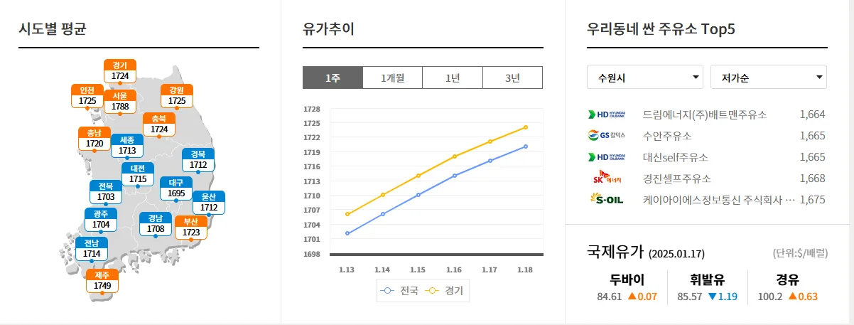 주유소 평균 가격 확인 방법
