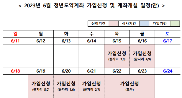 청년도약계좌 5부제 신청기간 (생년월일 끝자리 기준)