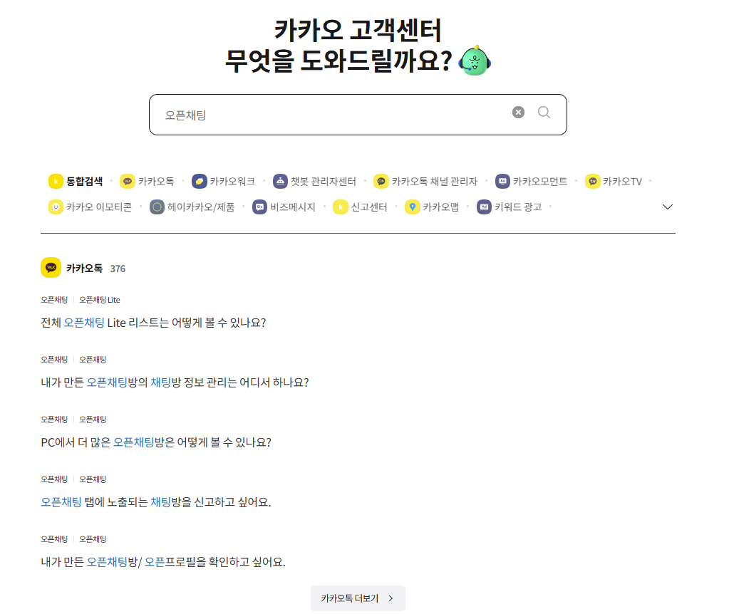 그럼에도 해결되지 않거나 추가 문의사항이 있을 때 아래 카카오 고객센터에서 자주묻는 질문에 대한 답변을 확인하시거나 직접 문의해 보시길 바랍니다!