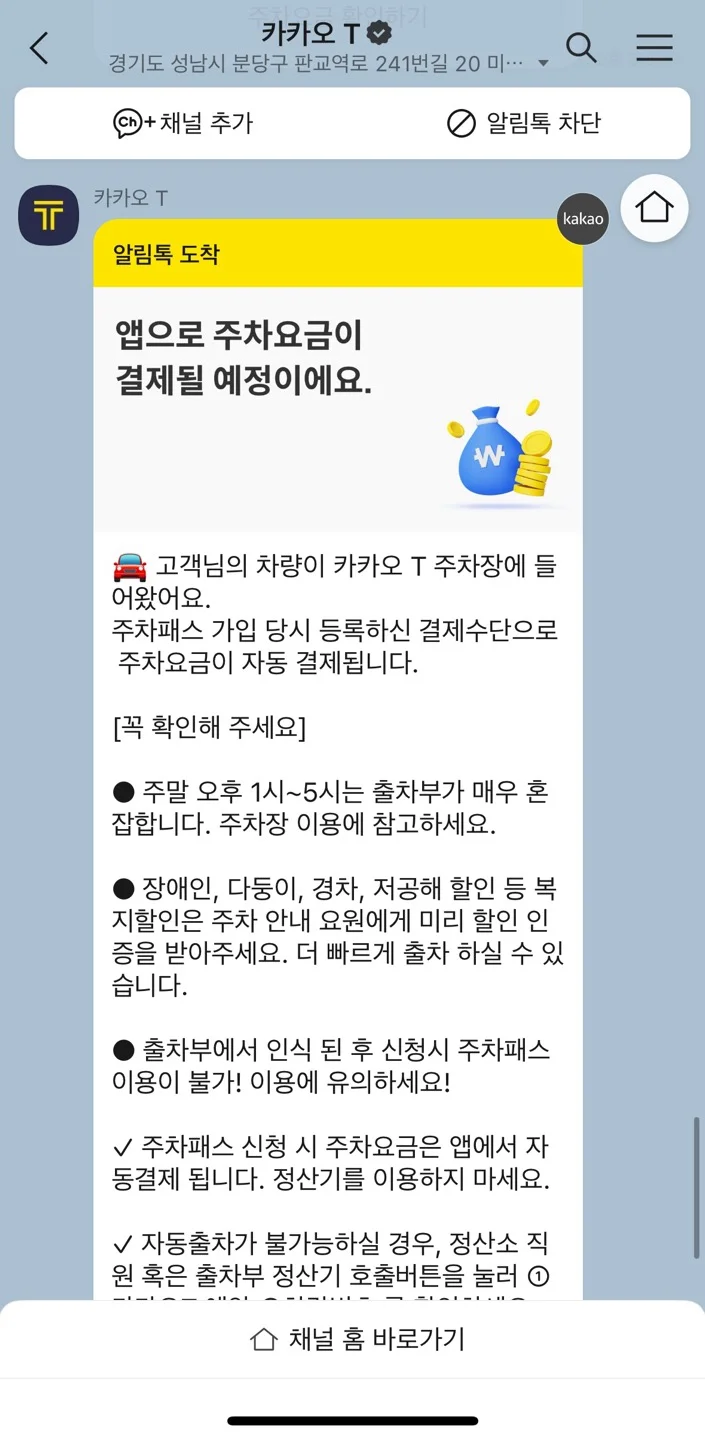 실제 아이들 데리고 다니다보면 카카오T 주자장이 꽤 많습니다. 아이파킹만큼 자주 보이는 거 같아요. 가장 좋은 건 카카오T 주차패스 등록해두면 그냥 주차장을 나가면 앱으로 주차요금이 알아서 결제되는 점이에요. 사람이 항상 많은 놀이동산 대표적으로 에버랜드, 서울랜드만 봐도 사전정산 미리 하려고 해도 몰릴 때 사전정산 줄도 엄청나요! 카카오티 주차패스 해두면 앞으로 키오스크 앞에 줄 설 필요도 없다는 게 가장 편하고 좋은 점이랍니다!