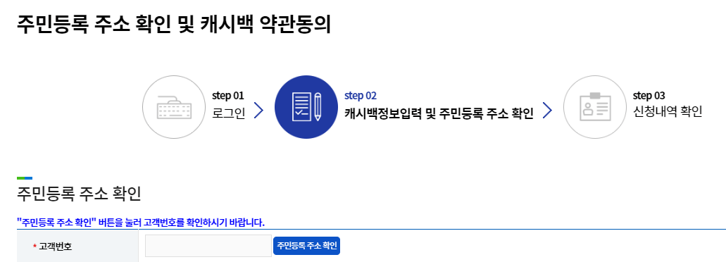 5. 고객번호까지 확인됐다면 아래 개인정보 제공 여부에 동의하시고 '에너지캐시백 신청하기' 버튼 눌러주시면 완료!