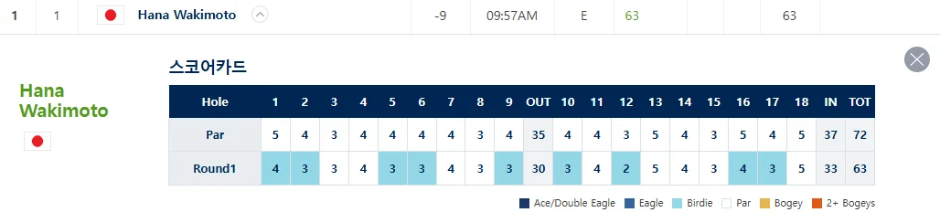 - 1위 : 와키모토 하나 - 9언더파 63타