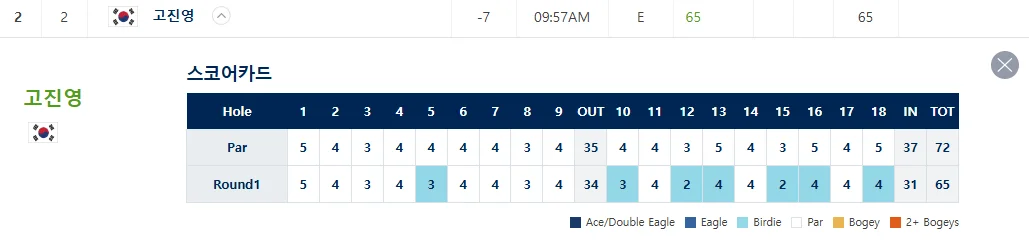 - 2위 : 고진영 -7언더파 65타