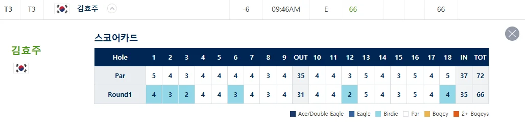 - 공동 3위 : 김효주 & 신지은 -6언더파 66타