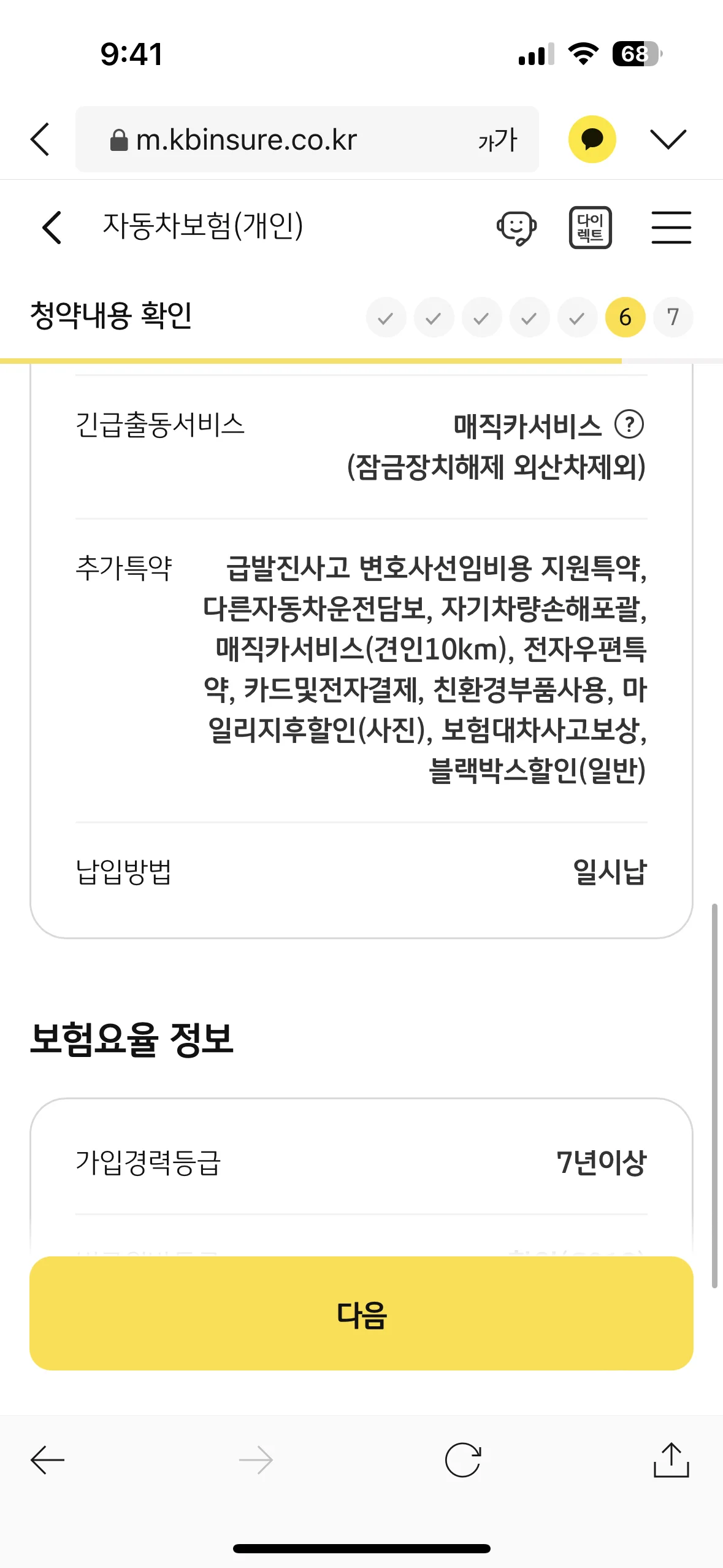 KB다이렉트 자동차보험료 가입방법 (최종보험료)