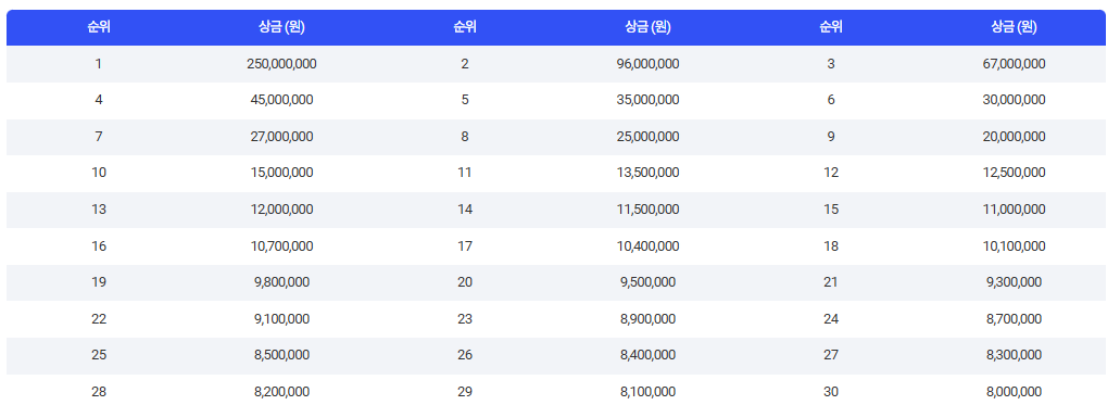 SK텔레콤 챔피언십 2024 우승상금 순위별상금